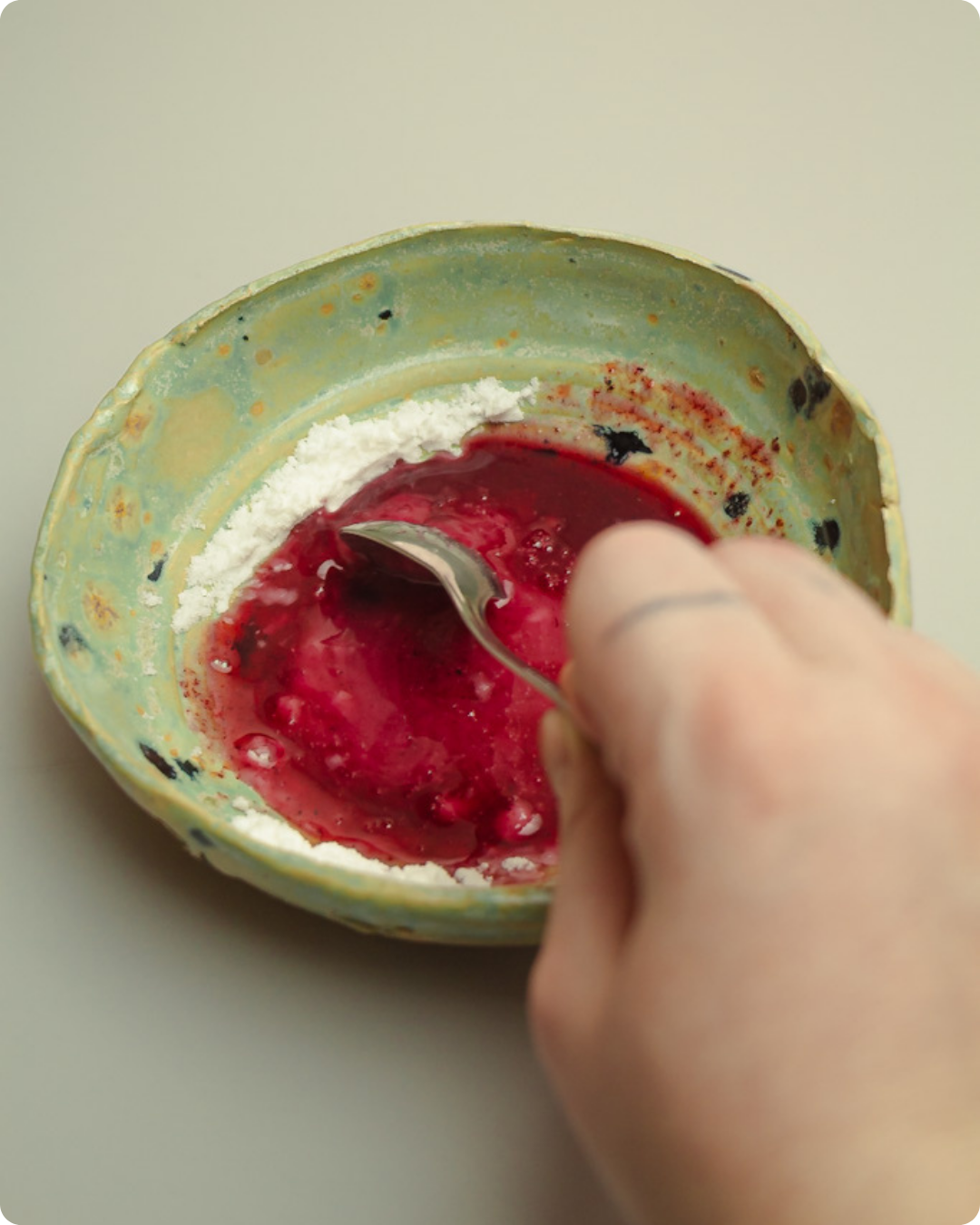 Misture o açúcar de confeiteiro e o suco de amora até ficar homogêneo
