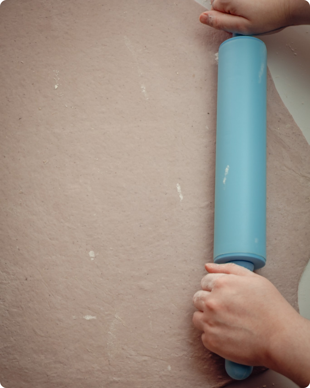Agora utilizando o rolo de massas, abra a massa no formato retangular com a espessura que desejar